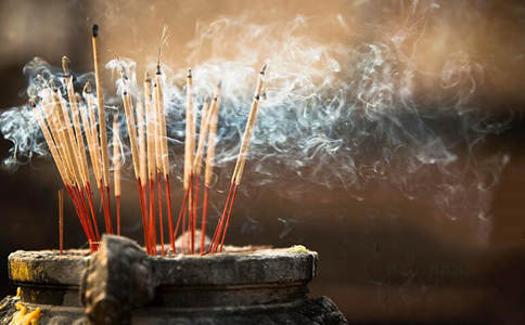 上香时,要先举香齐眉,平举,之后依规矩行四方礼。