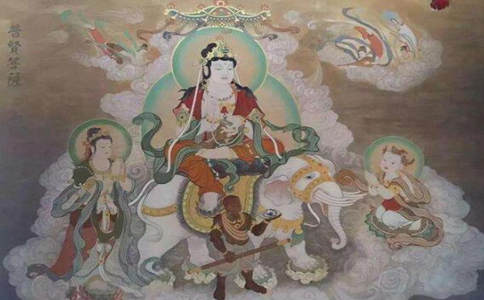 观世音菩萨以大慈悲救度众生,所以称「大悲」观世音菩萨;文殊菩萨以大智慧善说法要,我们称他为「大智」文殊菩萨;地藏王以大愿力救度苦难众生,因此称「大愿」地藏王菩萨,而普贤菩萨以大行门、大修行圆满大乘佛道,所以称他为「大行」普贤王菩萨。