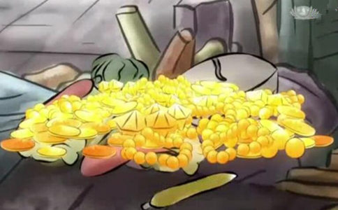 再过一段时间,双手还是空空,又向长者要一千两金。到了第六次,正好长者要出门,看到门口一堆垃圾,一只死老鼠在垃圾堆里,已经死了,就说若有人能用心,垃圾堆中有黄金!千两金又让这位独子拿走了。